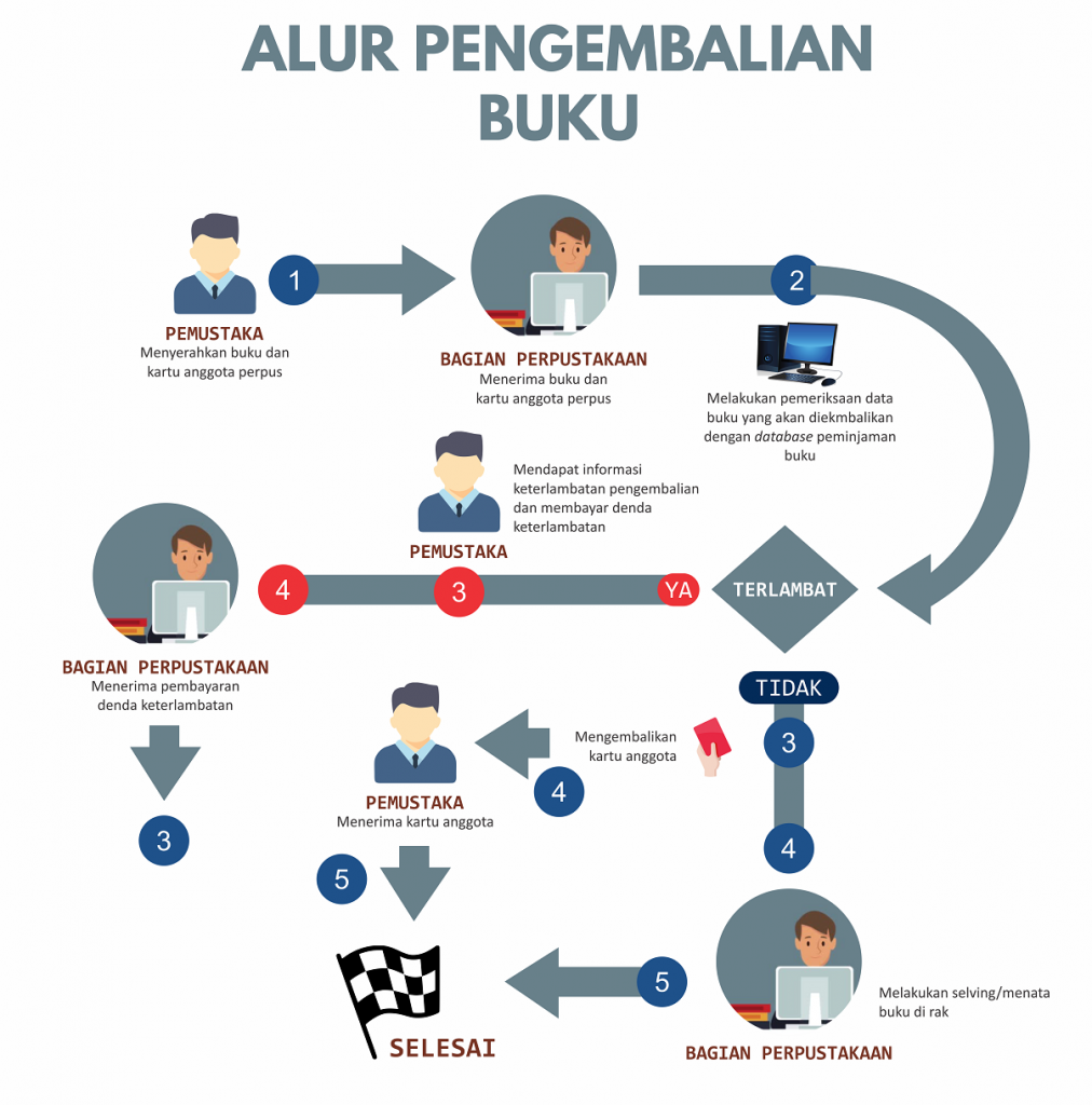 d. Petugas akan memeriksa kondisi buku dan mencatat proses pengembalian pada sistem komputer perpustakaan.